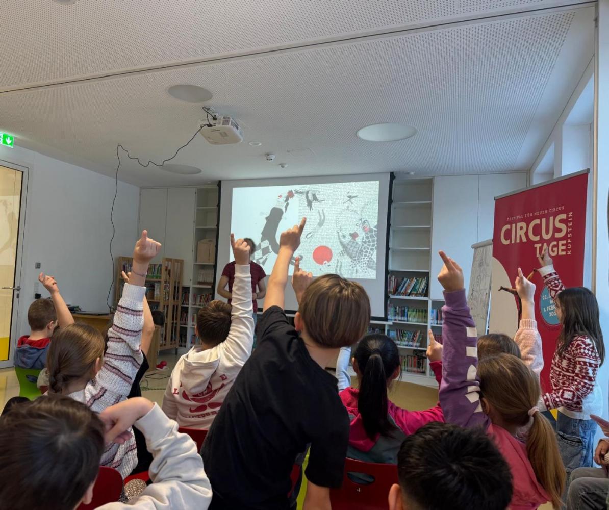 Michael Roher begeisterte die Kinder der VS Kufstein Sparchen mit einer interaktiven Mitmach-Lesung aus „Zirkus Sorriso“. Lachen, Staunen und Mitmachen standen dabei im Mittelpunkt!