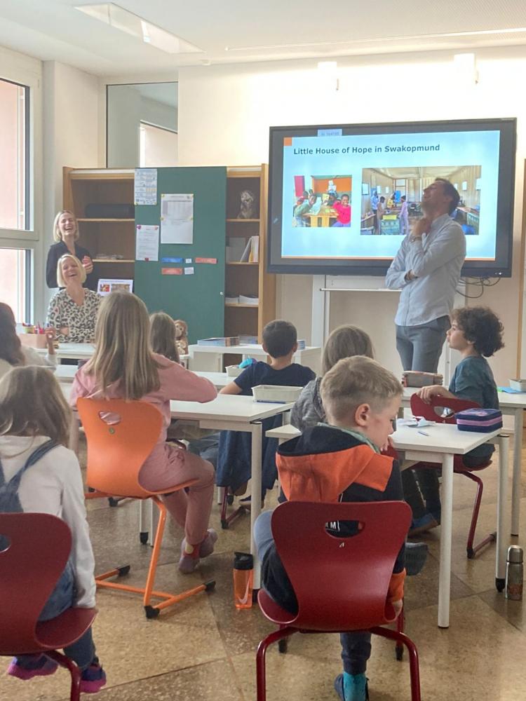 Die Präsentation war inspirierend und lehrreich zugleich. Die Schülerinnen und Schüler erhielten Einblicke in das namibische Schulsystem und entdeckten sowohl Gemeinsamkeiten als auch Unterschiede zwischen ihrem eigenen Alltag und dem der Kinder in Namibia. Tief bewegt von dem, was sie sahen, beschlossen unsere Schülerinnen und Schüler, ihren namibischen Freunden zu helfen, ihr Englisch zu verbessern – indem sie regelmäßig Briefe schreiben.
